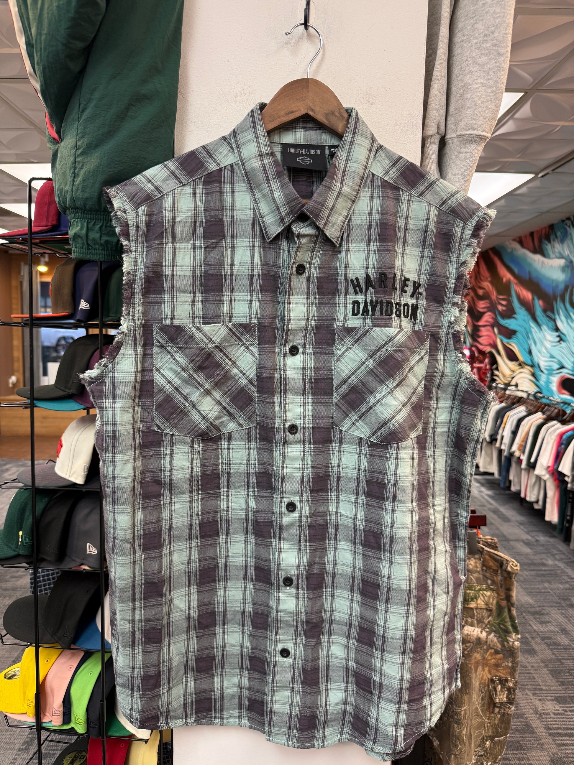 New Harley Davidson Sleeveless Plain Button Up